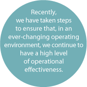 Recently, we have taken steps to ensure that, in an ever-changing operating environment, we continue to have a high level of operational effectiveness. During the first quarter of fiscal 2013, we transitioned to a new operations leadership structure outside our restaurants that has our Senior Vice Presidents leading fewer but larger geographic divisions. While these leaders remain accountable for competitively superior execution in our restaurants today, with the changes we’ve made they are also now able to spend more time defining the operational changes, innovations and standards required to respond effectively to the elevated demands we know our guests will have tomorrow.