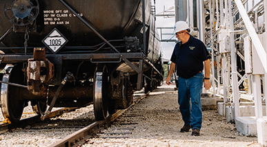 Taking responsibility for safety doesn’t end at our facilities. We work to ensure that our products are safe across all of our shipping modes and even when they reach retailers. When shipping by rail, CF ensures that cars are maintained, products are safely loaded and valves and caps are properly secured.